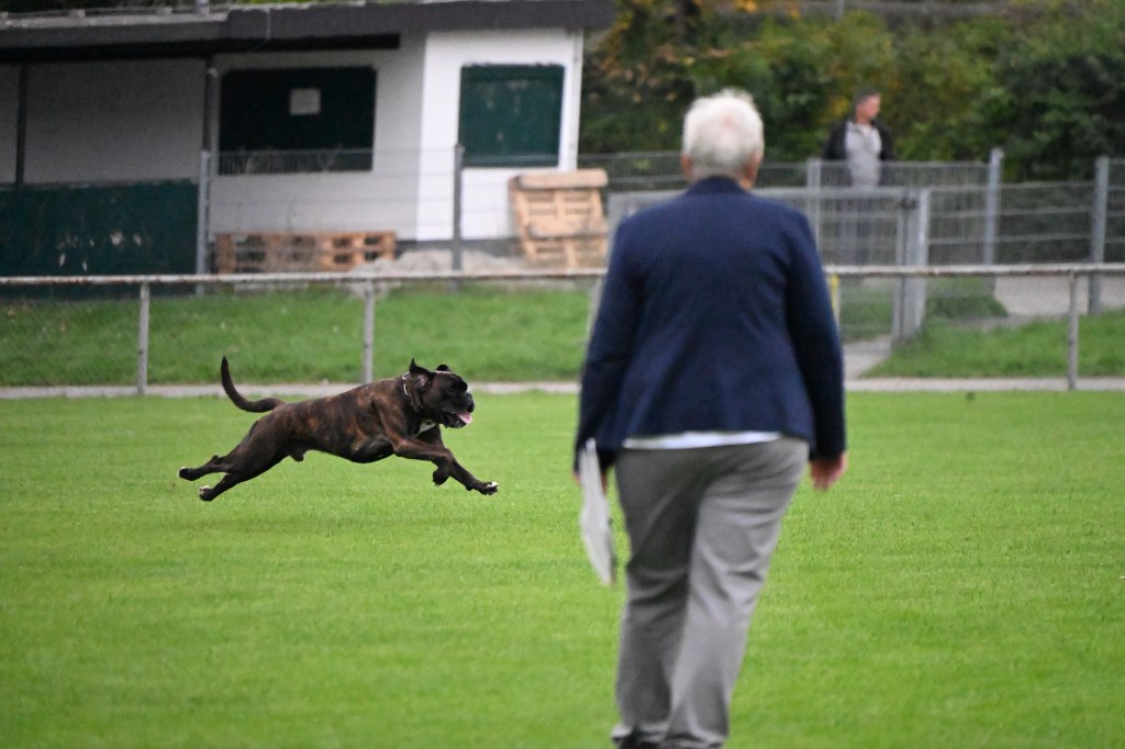 Unser Ralf Zoller hat mit seinem Hugo – Walero von Cassalina ein tolles Ergebnis erreicht. Die Fährte hat Hugo auf dem Acker sehr gut gefunden. In der Unterordnung hat er den vielen Zuschauern gezeigt, wie lustig Boxer auch in der Prüfung sein können und trotzdem bestehen können. Der Schutzdienst war wieder sein Element. Wenn er den Helfer sieht, ist er voll konzentriert. Mit 93 Punkten hat er den Rang 5 im Schutzdienst erreicht. Ralf und Hugo, wir sind stolz auf Euch.
